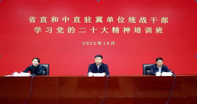 为引导省直机关统战干部及党外人士深入学习贯彻党的二十大精神,10月25日至28日,省直工委在省直党校举办了省直机关和中直驻冀单位统战干部暨党外人士学习党的二十大精神培训班,省直工委副书记曹宪锋作开班动员讲话。省直机关和中直驻冀各单位的统战工作负责人、各民主党派代表人士共计50人参加。