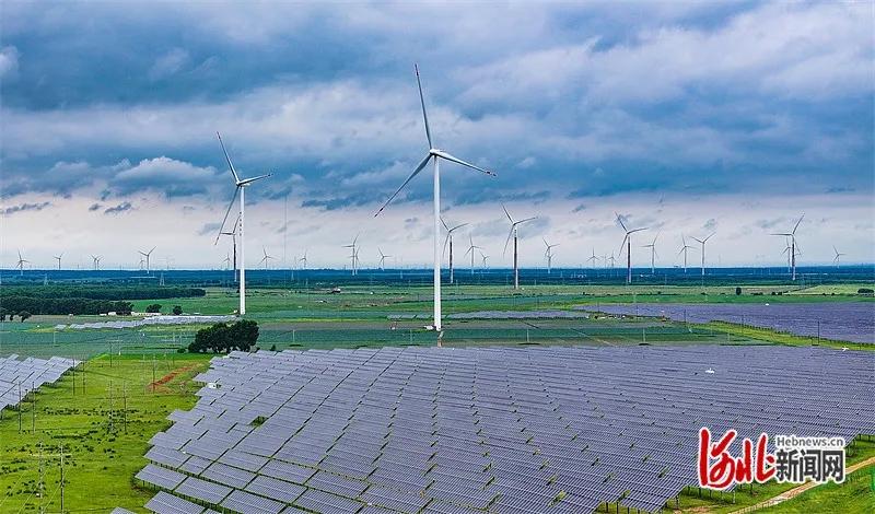 2025年7月8日,无人机航拍的位于张北县的风光电设施。河北日报记者 耿辉摄