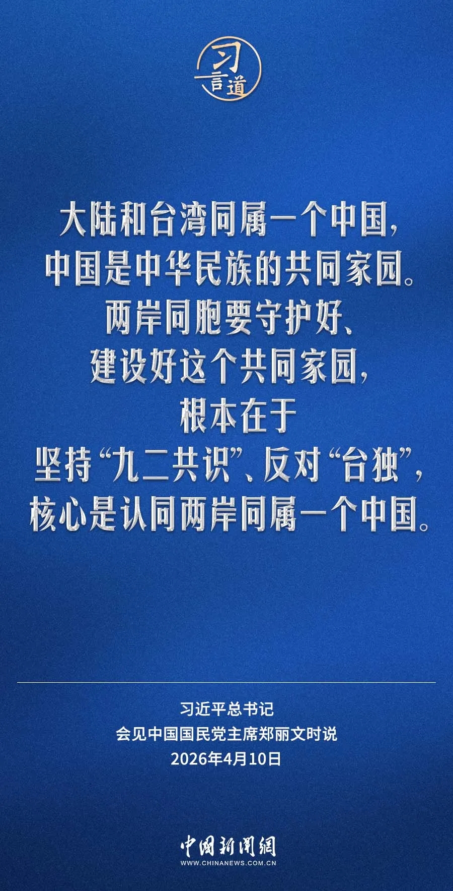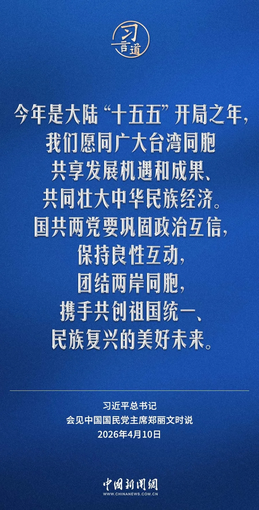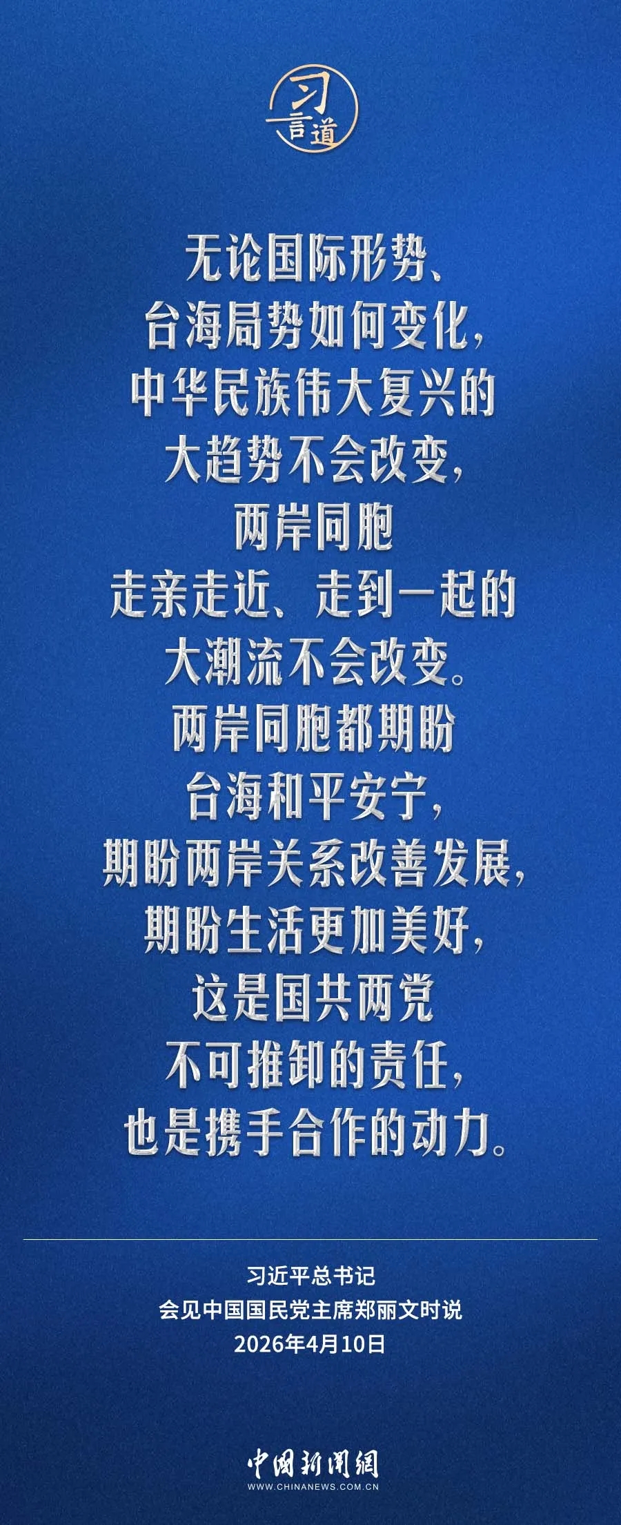 4月10日,中共中央总书记习近平在北京会见了郑丽文主席率领的中国国民党访问团。他指出——